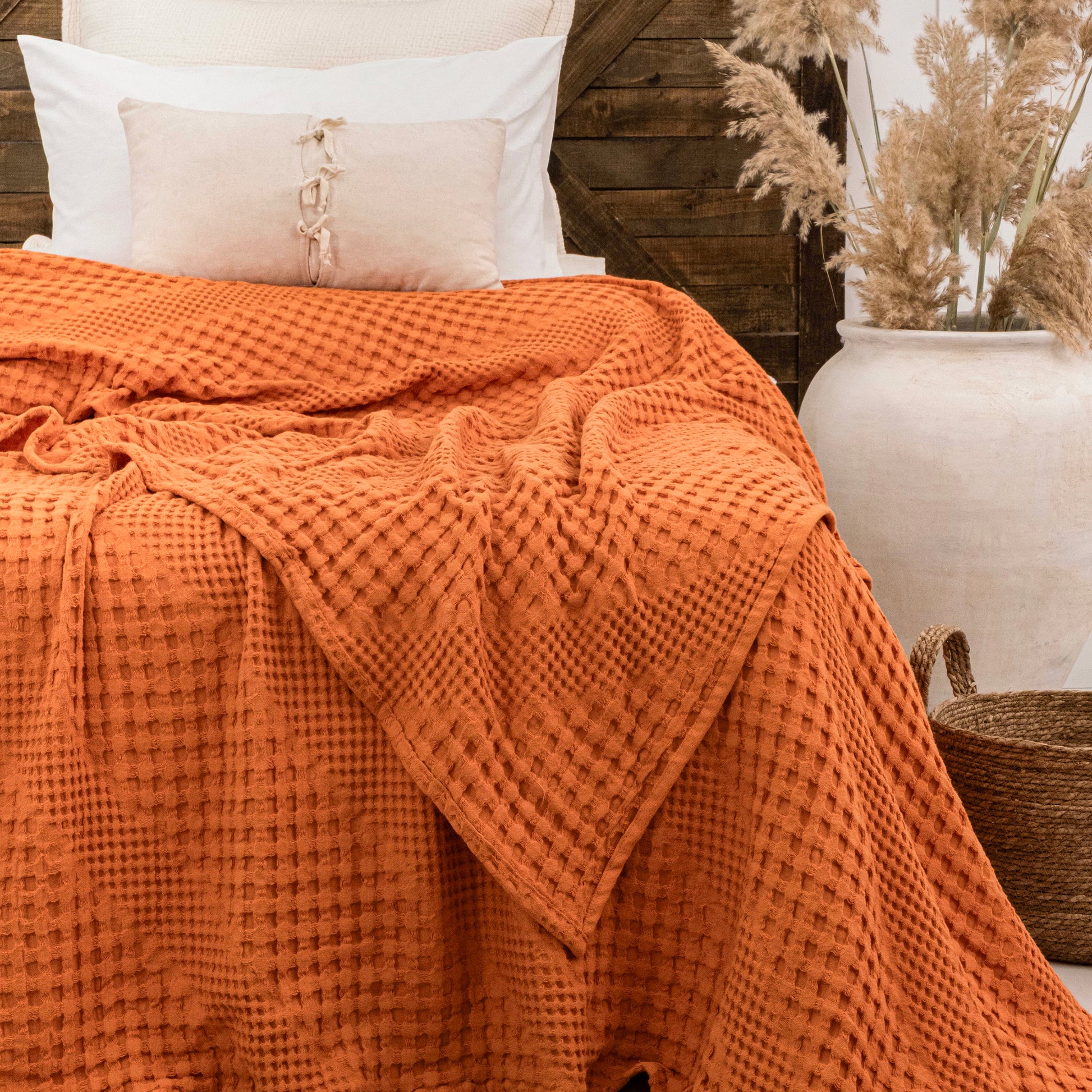 Indulge in luxurious comfort with our Orange Soft Cotton Throw Blanket. Made from 100% organic cotton, this double bedspread is hypoallergenic and prewashed for durability. Its reversible design and generous size of 170 x 250 cm make it perfect for sofas, double beds, and large 2-seater sofas. Machine washable and temperature-control, it's the perfect addition to any modern home decor. Experience the softness and lightweight feel of organic cotton with our stylish and versatile throw.