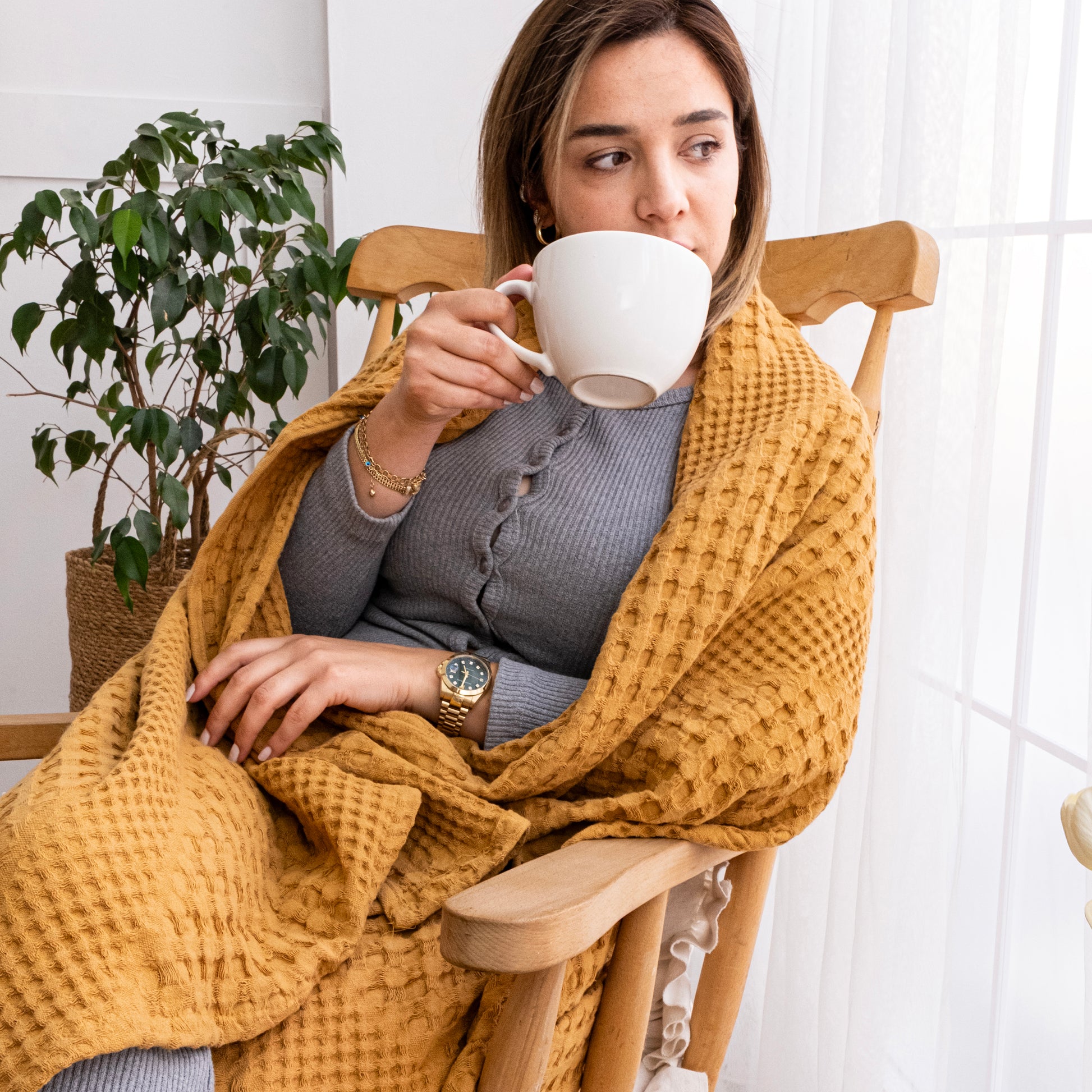 Crafted from 100% organic cotton, this king-size throw blanket is the perfect addition to your home.